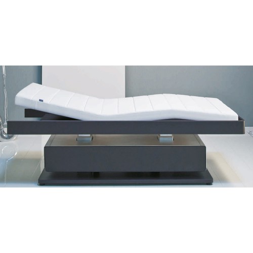Великолепная дизайнерская кушетка для веллнесс-зоны. Кушетка оснащена эргономичным матрасом, и имеет  четыре  мотора для регулирования  высоты, угла подъема головной части, секции бедер и голени, а так же ножной части.